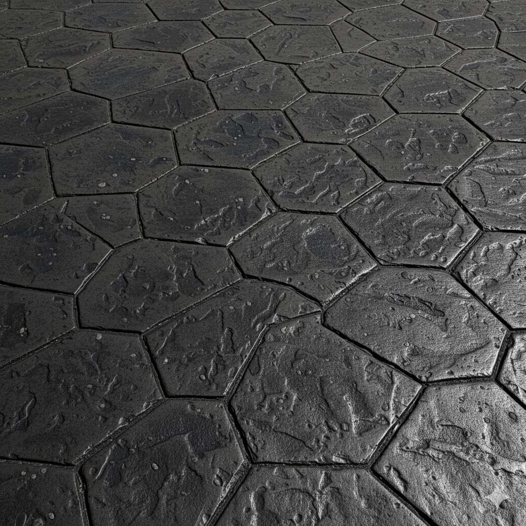 คอนกรีตพิมพ์ลาย ( Stamped Concrete ) มีความแข็งแรงมาก โดยการใช้ปูนมอร์ต้า มีความแข็ง (Strenge) อยู่ระหว่าง 425-450 โดยเทที่ความหนา 3-5 เซ็นติเมตร และมีการลงสีพิเศษ Color Hardener ฝังในเนื้อปูน 2-3 มิลลิเมตร โดยมีการใช้น้ำยาอะคลีลิคทับหน้าเพื่อเพิ่มความแข็งแกร่งให้เนื้อคอนกรีต