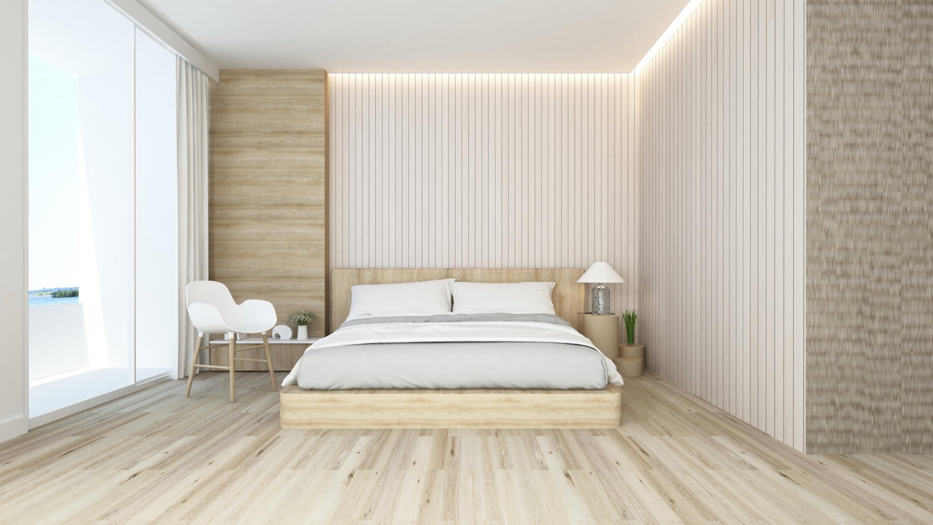 โดยสามารถผสมกับการตกแต่งห้องนอนด้วยวัสดุที่ทำจากไม้ เช่น ตู้ โต๊ะ เตียง ก็จะสร้างบรรยากาศของความเรียบง่าย และดูผ่อนคลายมากยิ่งขึ้น