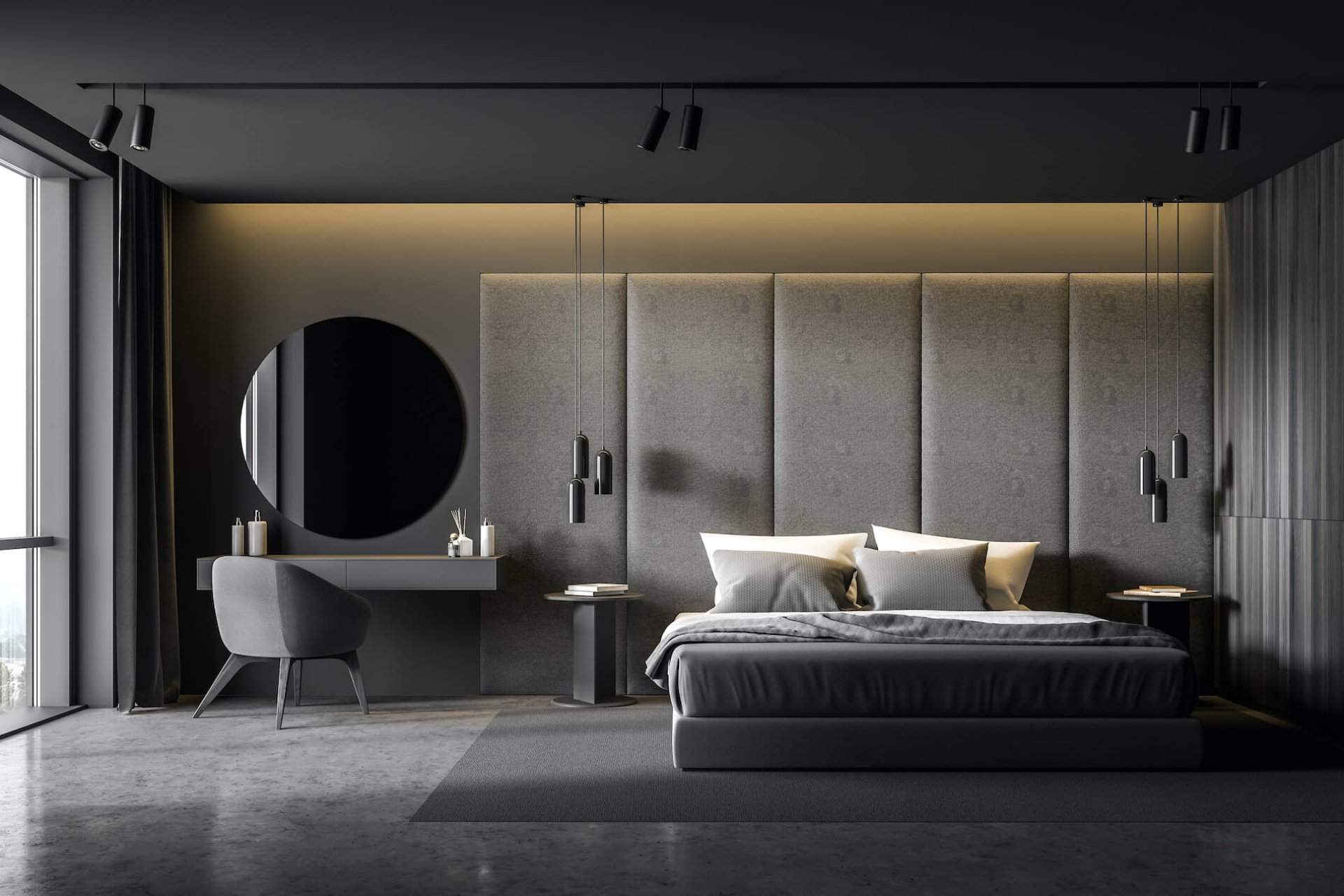 ห้องนอนสไตล์โมเดิร์นโทนเทา