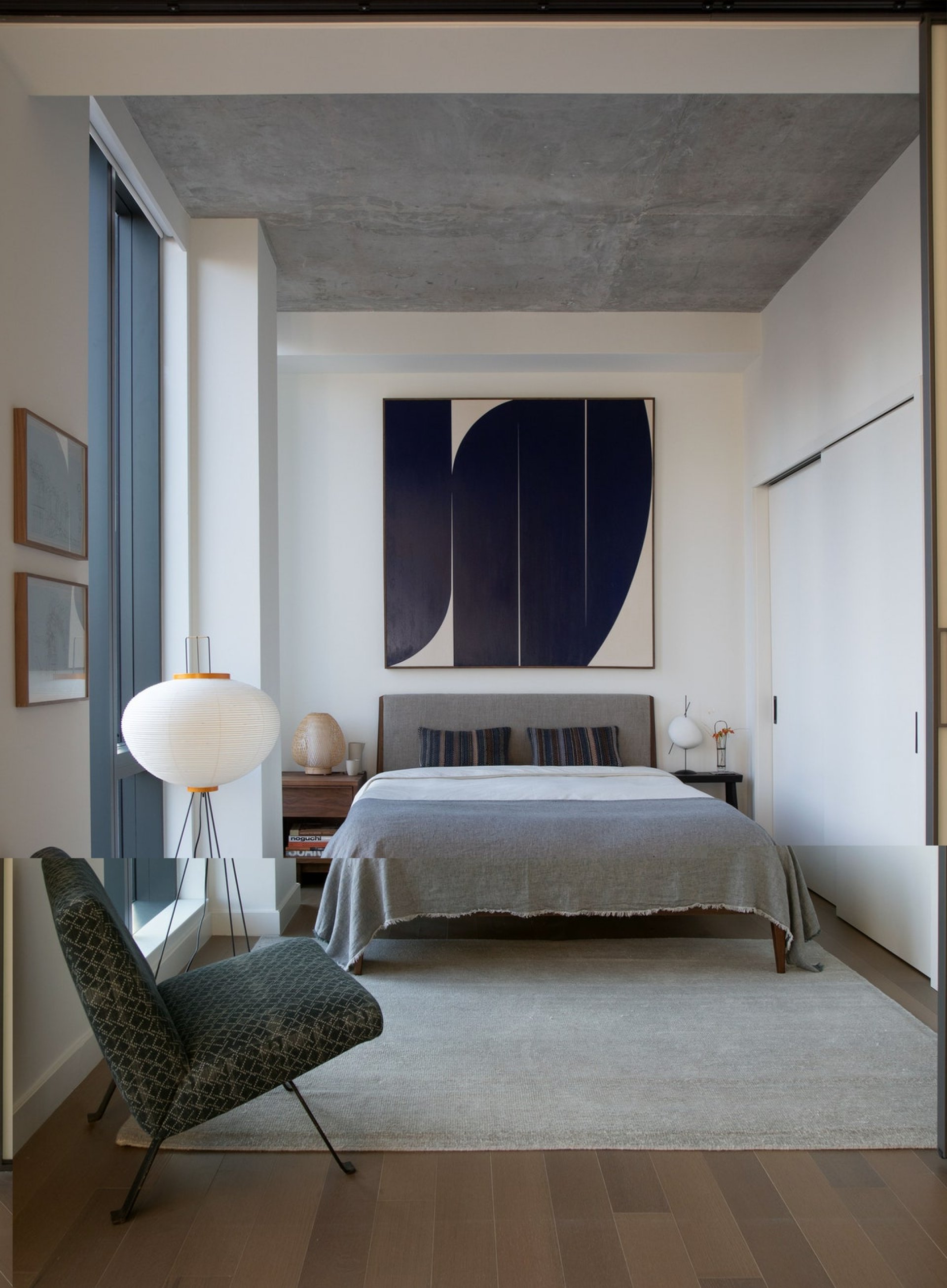 ส่วนเตียงนอนเลือกแบบเป็นโครงเหล็ก หรือเตียงที่มีดีไซน์โค้งมน และชุดเครื่องนอนสีเดียว เช่น สีเทา สีขาว เป็นต้น
