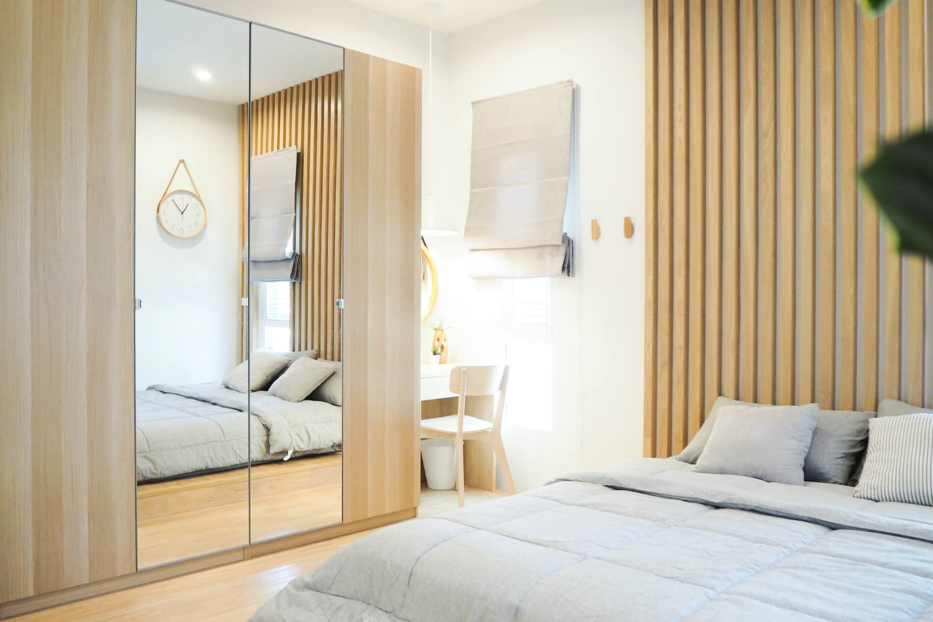 ห้องนอนสไตล์ญี่ปุ่น จะเน้นความเรียบง่าย สะอาดตา ไม่มีการตกแต่งเยอะ โดยโทนสีของห้องจะเป็นสีขาวเป็นหลัก ใช้การตกแต่งห้องนอนด้วยงานไม้สีอ่อน และมีการใช้สีเทาเข้มหรือเขียวเข้มเพิ่มจุดสนใจให้กับห้อง